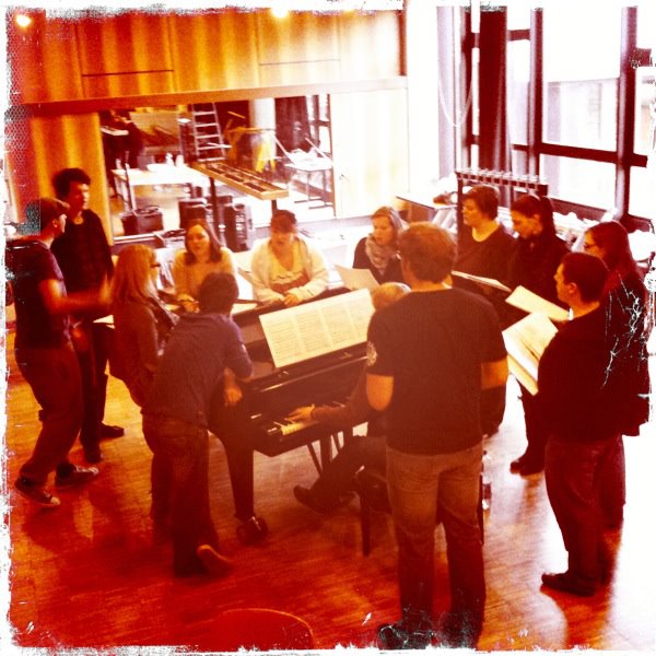 Gleich fünf Stunden Chorprobe standen am Sonntag auf dem Programm, nachdem wir morgens schon mir unserer Weltreisenden Anja die letzten Choreos wiederholten. Und so sieht das aus, wenn sich der Großteil des Ensembles höchst konzentriert dem Wohlgesang widmet 😉 :