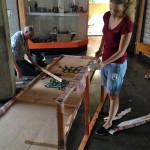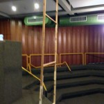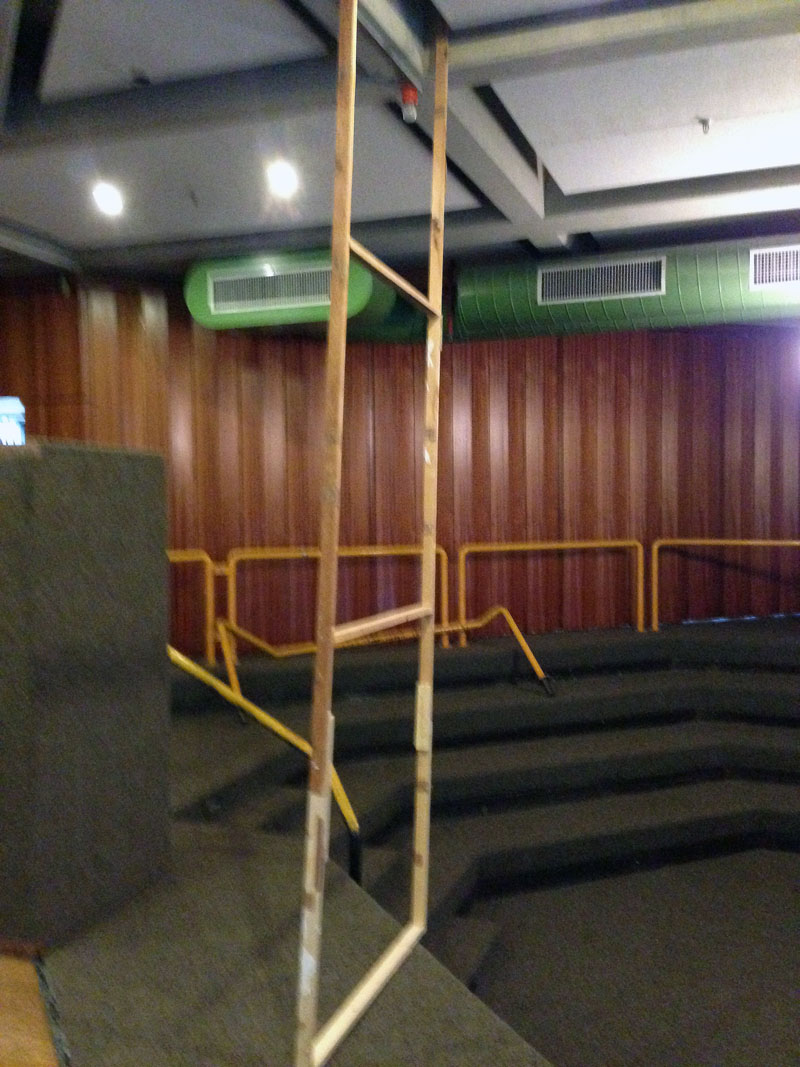 Wenig überraschend: Eine weitere arbeitsreiche Woche liegt hinter uns. Es begann fast schon gewohnt mit Soloproben am Montag- und Dienstagabend, diesmal garniert mit einer umfassenden Kostümfundus-Begehung. Freitag ging dann die „Mission Bühnenbild“ in ihre nächste Runde – diesmal aber nicht in unserem Lager, sondern direkt vor Ort in den Werkräumen des Kerpener Gymnasiums. Statt schwarzen Kisten oder Showtreppen arbeiteten wir an vier hohen Aufstellern, die später als Lichtgassen und Gassen für Auf- und Abgänge genutzt werden sollen. So hieß es: Vorhandene alte Aufsteller entkernen, weitere neue Gerüstrahmen bauen, MDF-Platten zuschneiden, Querstreben und Bodenhalterungen ausmessen, alles verschrauben und -hämmern – nach gut vier Stunden Arbeit und mit tatkräftiger Hilfe des Schul-Hausmeisters (vielen Dank nochmal!) standen die guten Dinger und passten perfekt an Ort und Stelle. Doch an Feierabend war noch nicht zu denken: Gut 200 Quadratmeter schwarzer Bühnenvorhang mussten sortiert, entfaltet und teilweise schon aufgehängt werden, denn wir möchten die schulfreie Ferienzeit auch nutzen, um unter realen Bedingungen das Licht für unsere Aufführungen zu programmieren. Also heißt es: Endspurt in Sachen Bühnendesign – alles muss fertig werden, damit wir einschätzen können, welche Licht-Einstellungen die Szenen am besten zur Geltung kommen lassen.