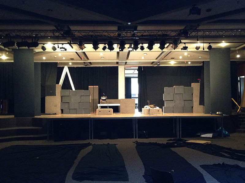 - Work in Progress – nach und nach kommen nun alle Elemente auf der Bühne zusammen.