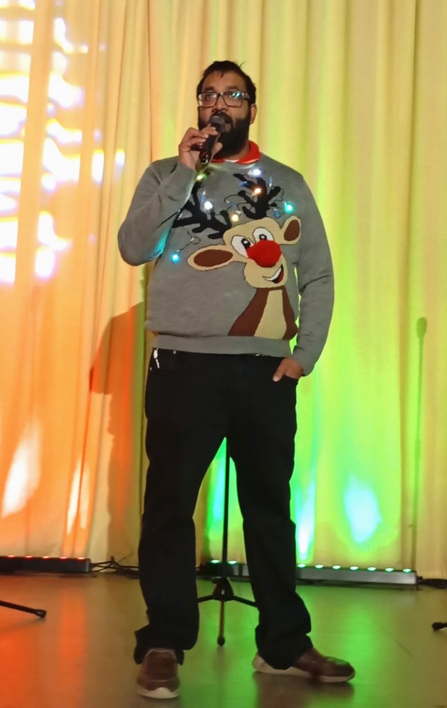 Wir eröffneten das Konzert mit einer ganz besonderen Version von „Stille Nacht“: Der Klassiker kommt auch in WIE IM HIMMEL, unserem nächsten großen Musical, vor und schlug so die perfekte Brücke zu dem, was die Zuschauer in den kommenden zwei Stunden erwartete: die schönsten Weihnachtsmelodien, besinnliche Musical-Hits und Musik aus beliebten Familienfilmen wie „Die Schöne und das Biest“ oder „Aladdin“. Selbst von spontanen krankheitsbedingten Umbesetzungen ließen sich unsere 18 Sängerinnen und Sänger nicht aus der Ruhe bringen – gefühlvoll interpretierte Balladen und Duette sorgten schnell für erste Gänsehautmomente im ausverkauften Saal. Getragen wurden die Lieder durch eine einfühlsame Klavierbegleitung von Benedikt Haastert, während unser musikalischer Leiter David Pesch für professionellen Ton sorgte und Marco Maciejewski über Nacht ein wunderbar stimmungsvolles Lichtdesign gezaubert hatte. Selbstverständlich auch wieder mit dabei: unser charmantes, bestens eingespieltes Moderations-Duo Tim Stranowsky und Miguel Schlang.