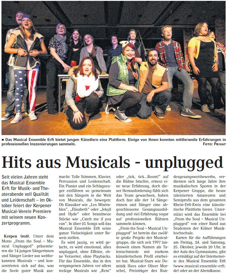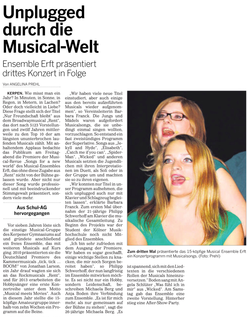 ‚Unplugged durch die Musical-Welt‘ (Kölner Stadt-Anzeiger & Kölnische Rundschau, 27.10.2014)